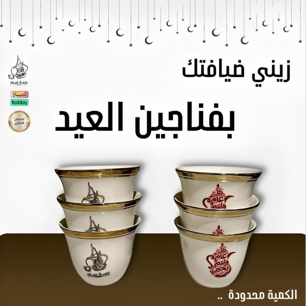 فناجين قهوة بنقوش العيد