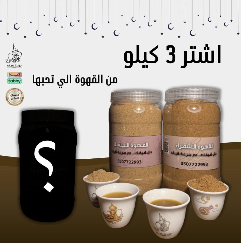 - المحتوى يجيك: 3 علب - كل علبة 1 كيلو قهوة سعودية.